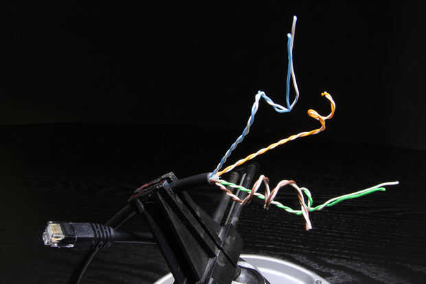 Cortar las 4 últimas pulgadas del cable Cat 6 y tira de nuevo los pares. Sostenga el extremo corto 4 pulgadas cortado y tira esos pares así, te conectan los componentes dentro de la caja de control.