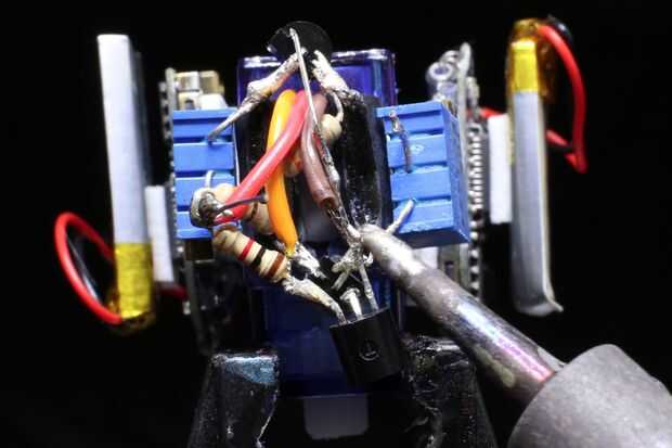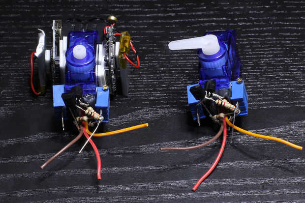 Recorte los cables de servo y suelde el cable naranja señal al colector – cruce k 1.