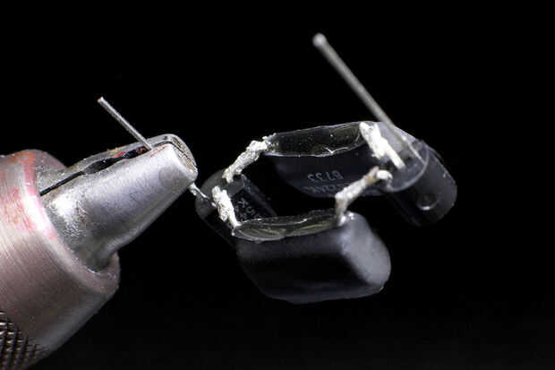 Ahora el emisor de este transistor tercer para el emisor del otro transistor en el lado opuesto de la soldadura. Esta conexión es nuestro carril 0V.