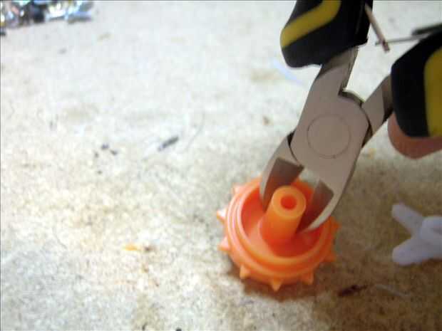 Usted tendrá que modificar la rueda de cortar el apoyo de axel interior. Luego use un destornillador de cabeza plana para escoger cuidadosamente a cualquier pieza de petruding. Que la superficie plana y agradable.