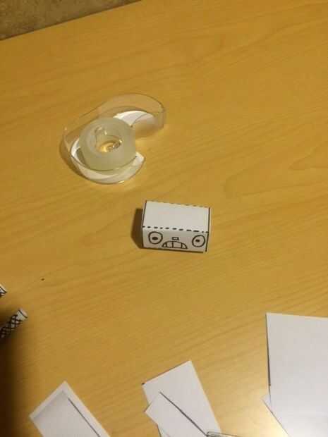 Cortar el rectángulo más grande hacia fuera y doble a lo largo de la línea de puntos. Cinta la Plaza cerrada.