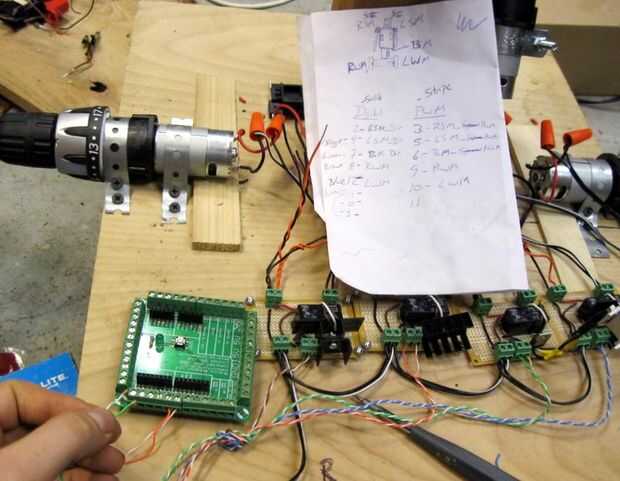 Cada tablero tiene 2 entradas que controlan la velocidad y dirección del motor. Cable de CatV es conveniente porque ya está incluido en pares de 2.