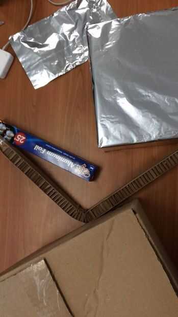 Cubre cada cuadro en unas pocas capas de papel de aluminio, usando cinta adhesiva transparente para asegurar los bordes. Asegúrese de que todas las esquinas están adecuadamente cubiertas. Usando múltiples capas hace que su robot más durable que el papel de aluminio puede rasgar fácilmente alrededor de los bordes.