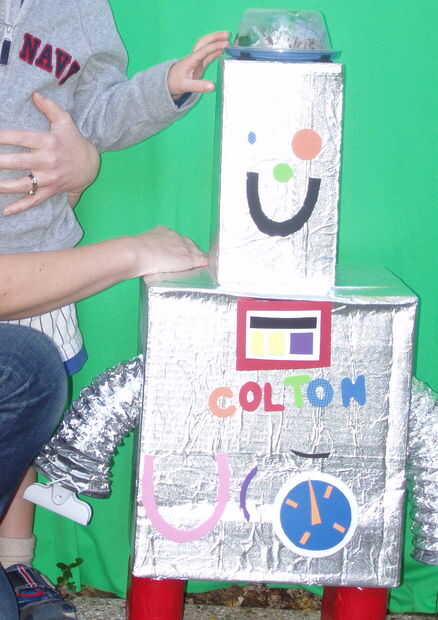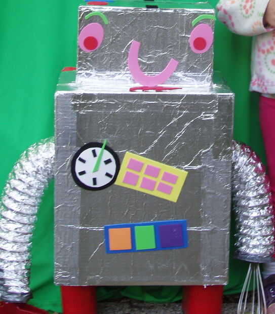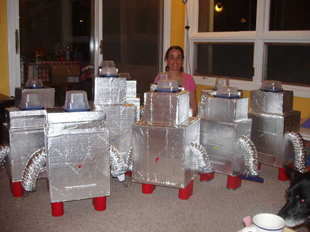 Poner los brazos, pies, neurocráneo y pegatinas en el vientre del robot y luego darle a cada niño. Tienen que abrir el robot, sacar las piezas y montar y decorar. Luego toman el espacio de tupperware y relleno con asqueroso cerebro cosas que he hecho; He hecho pasta y había pintado de colores diferentes.