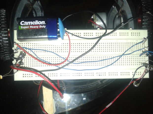 ahora nuestro seguidor luz de chorro simple es ready.i utilizadas pernos para conectar los cables en la placa, puede utilizar enganchado los cables o clavijas de cabecera para conectar los cables en la placa. usé una batería de 9v para alimentar este robot. es un robot sencillo y fácil de hacer. Si tiene dudas consulte el diagrama del circuito. ¡ DISFRUTE!