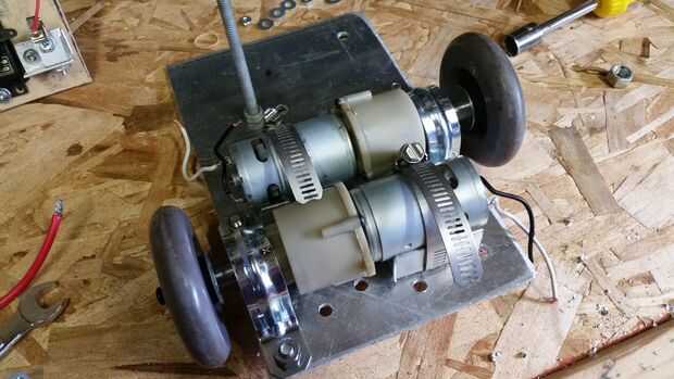 Abrazaderas o correas de metal son una buena manera barata para mantener los motores en su lugar. Ataduras de cremallera deben ser suficientes para mantener la batería y la electrónica en su lugar para este proyecto. Cinta viene bien también para algunos de los componentes más ligeros.