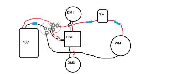 Para araña, usé una de las baterías del taladro para alimentar los motores y el arma. Montan tanto taladro las baterías en paralelo permitiría que el robot ejecute dos veces como mucho, pero ocupan un espacio y añadir peso. Cada sistema también se podía ejecutar por su propia batería. Escoger cualquier configuración funciona mejor para usted. Terminales de anillo pueden utilizarse para conectar el arma motor y ESC a la batería. (Nota: al menos uno de los terminales de anillo no conecte directamente a la batería. Ponga algún tipo de conexión entre el cable de la batería y el anillo terminal para que todo el sistema se puede desconectar fácilmente sin tener que desmontar los terminales de anillo). Conectores de presión son adecuados para todas las conexiones. Las cosas que desea tener cuidado aquí una) no son cortocircuito la batería y b) Asegúrese de que conecte el positivo y negativo de la batería conduce a los terminales apropiados en la ESC. Si la batería está conectada a la salida hacia atrás, inmediatamente destruirá la parte más cara del robot. Una vez que se sujetan los terminales de anillo, envuélvalo con algunos cinta eléctrica para evitar cualquier cortos. Las imágenes siguientes deberían ayudar a asegurar que el cableado se realiza correctamente.