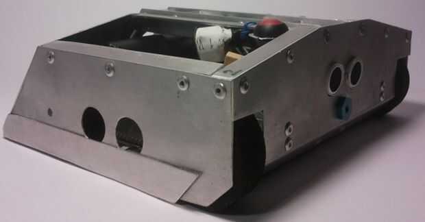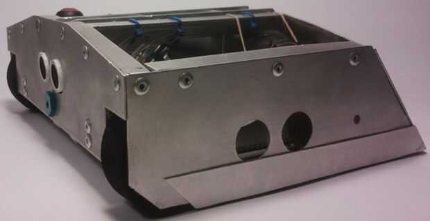 Puede verse que el chasis del robot de sumo se mantiene unida por una gran cantidad de remaches pop ligero.