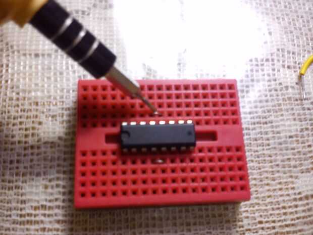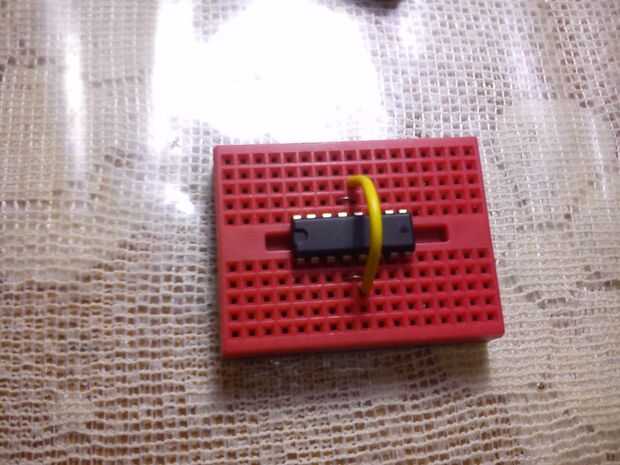 Conectar los pines 4, 5, 12, 13 con pequeños puentes. Usted puede hacer estos puentes con cables de aluminio de núcleo sólido. Conectan los pines 1 y 9 juntos los pines 8 y 16. Conectar la clavija: