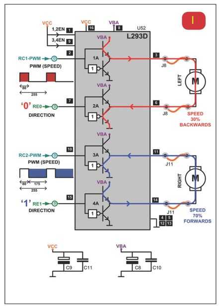 El video muestra los pasos para controlar el mundo real hardware uso de ancho de pulso modulado (PWM) basado en salidas. El PWM salidas en coche un conductor del motor de puente H IC como el L293D. Cada motor tiene una señal PWM para la velocidad y una segunda señal para controlar la dirección del motor.