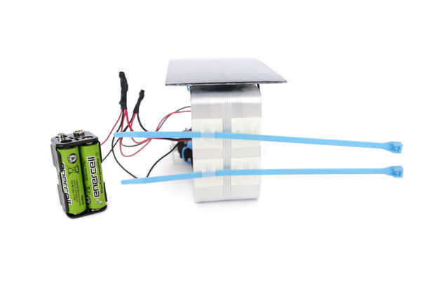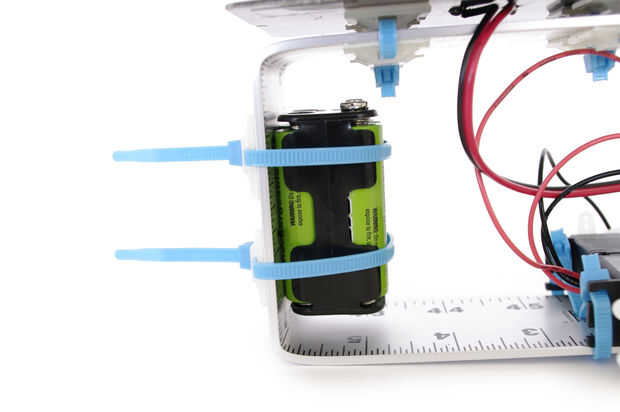 Zip atar las pilas en el interior de la 'U'-forma tal que se sostienen firmemente en su lugar.
