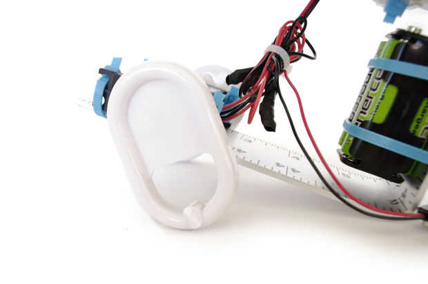 Pegar los ganchos para montaje en pared modificada a cada uno de los cuernos de servo correspondiente (lo que se ve como un engranaje).