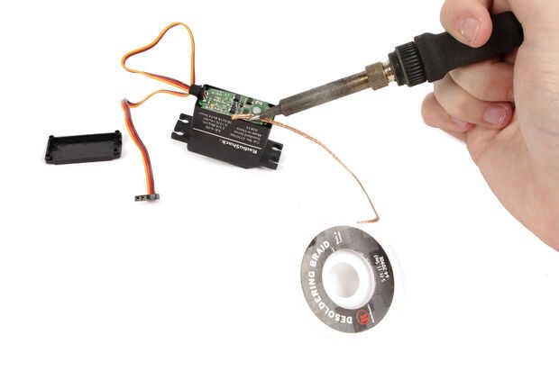 Desoldar de la placa de circuito interior y conecte un cable rojo y negro a cada uno de los terminales del motor.