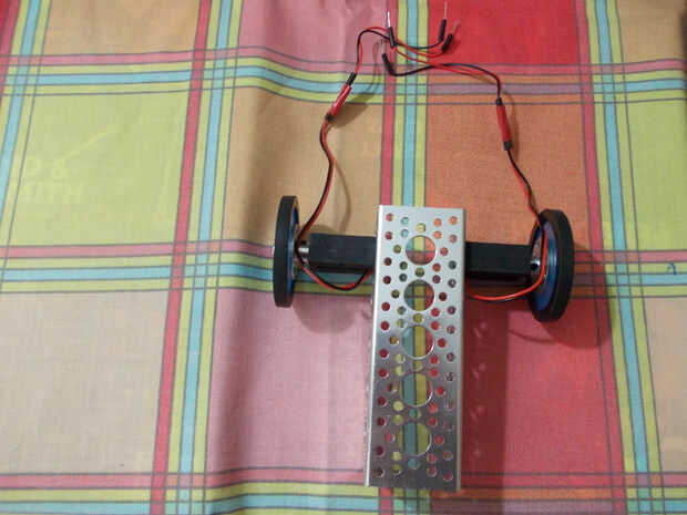 Debe conectar 2 cables a los cables de los motores para trabajar con el escudo del motor Arduino. puede soldarlos pero prefiero poner alguna cinta aislante. El kit es muy fácil de montar.