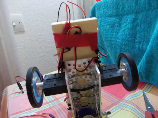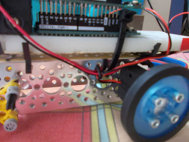 Asegure los cables de los motores con cremalleras de corbata en el chasis y los cables de la batería con cinta aislante por debajo de la placa.