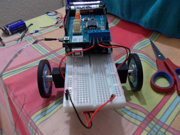 Paso 6: Fijar los cables, añadir batería de 9V, cables de los motores y sensores.