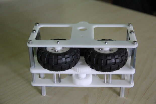 3. Asegure ambas ruedas abajo con otro separador y sujete la placa externa con tornillos M3x0.5.