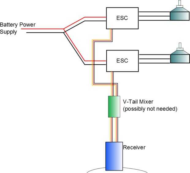 Si su transmisor no es compatible con "la señal del mezcla", agrega el mezclador V-Tail entre los cables de salida y el receptor.