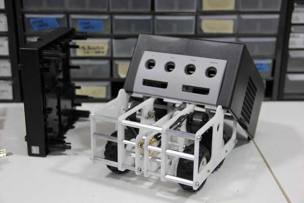 Para la Exposición de Brixhibition a finales de abril, me pidió instalar y correr un par de campos de fútbol de robots interactivos. Los Robots debe ser robusto y fiable como el público se va interactuando con ellos. También necesitan tener un un con