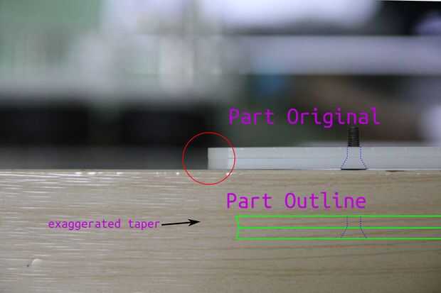 Para la función de avellanado, importa el lado de la placa! Tomar una mirada cercana a las dos placas principales y poner la cubeta en la parte que fue cortado para que el borde más ancho laser. Para más detalles, ver el zoom en imagen con notas.