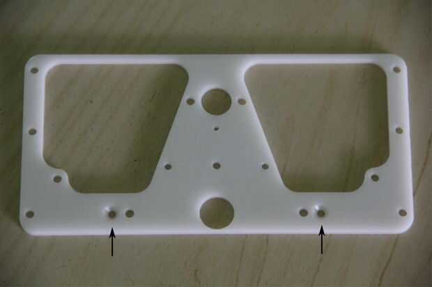 Nos estamos tocando arriba ciertas características en estas piezas porque queremos que ciertos tipos de ajustes: algunos ajustes de prensa apretados, algunos ajustes de resbalón flojos. Cuando le encajan un pasador en la parte en el delrin, estamos realmente aplicamos una tensión en la placa que obliga a ampliar. Esta tensión se exprime en el perno, sosteniendo en su lugar!