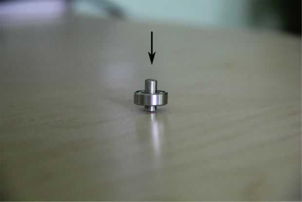 Utilizando la misma técnica que antes, press-fit el pasador largo de 8mm en los rodamientos de bolas con un diámetro interno de 5 [mm]. La imagen de arriba tiene el pasador sobresale más allá del cojinete, pero usted puede empujar tuyo hasta que el pasador quede al ras con la parte inferior del cojinete.