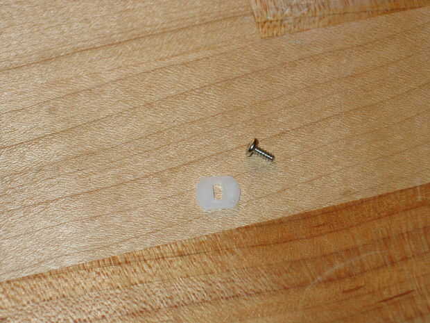 El tornillo usado para sostener el potenciómetro en. La pequeña pieza de plástico conectado a la armadura del potenciómetro en el engranaje de salida; puede haber caído pero no importa de cualquier manera.