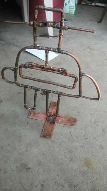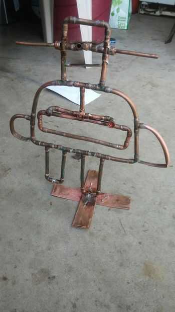 Así que tiene un robot de Instructables totalmente construido, con ninguna forma de hacerlo a pie. Así que miró a su alrededor en mi montón de chatarra y encontré un trozo de tubo de cobre de 1-1/4". Córtelo a la longitud que quería y luego tomó mi trineo de 3 lb y había lo había aplanado. Después de acoplar el tubo yo limpiar para arriba. Luego viraron las piezas de tubería a la parte inferior del robot. Llevó a cabo y no derrumbarse por lo que he limpiado todo y lo para arriba en un estante en el garaje.