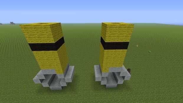 (Para este instructable conjunto es una buena idea seguir las fotos) ahora para las patas van encima de los pies y apilar hasta 4 cuadras en lana amarilla entonces 1 en negro y 2 más en amarillo. Deben ser huecas. Estas son las piernas.
