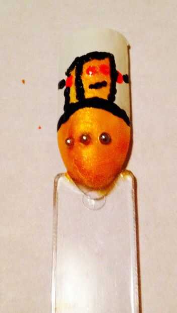 Última rellene el rectángulo en el lado de la cara con esmalte naranja.