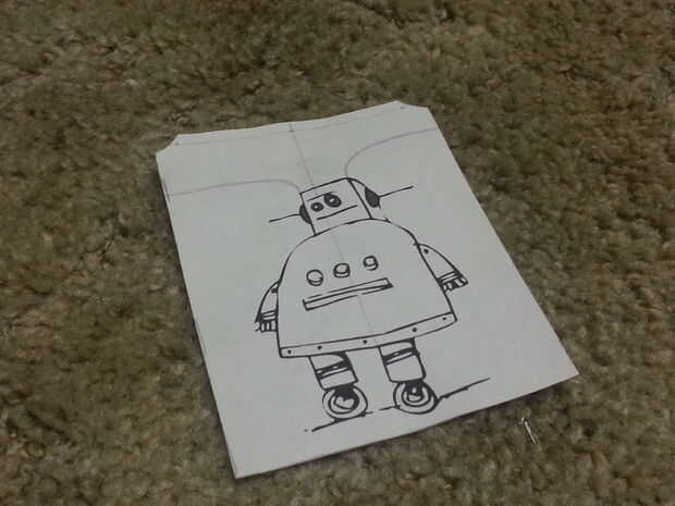 Esto puede parecer un poco raro pero cuando cortando el robot que necesita tener una referencia a la plantilla para asegurarse de que está en el lugar correcto en su madera. Conectar la parte superior de la cabeza del robot al borde de la plantilla de algunos cómo, mi método parece funcionar bien. Luego dibujar el esbozo de la robusteza.