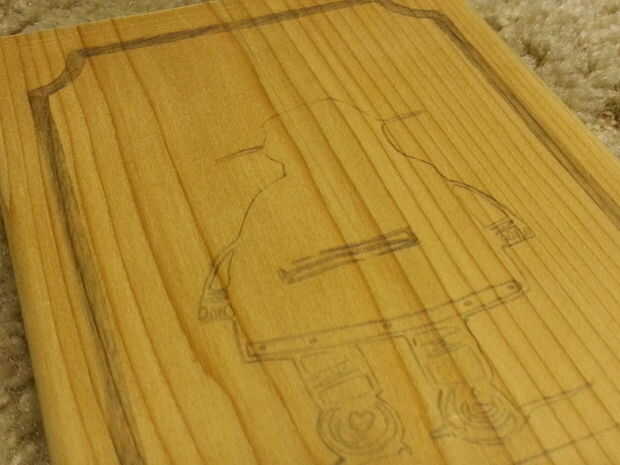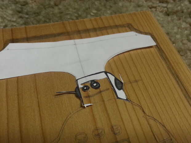 Para empezar, coger su cuchillo x-acto y recortar el interior de las ruedas y dibujar sobre la madera. Continuar a hacer esto para las piernas y los brazos. Para dibujar su torso y la cabeza, use el mismo método utilizado en la muestra. Los ojos pueden ser un poco complicados y usted podría tener a mano gratis algunas cosas.