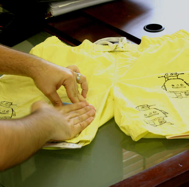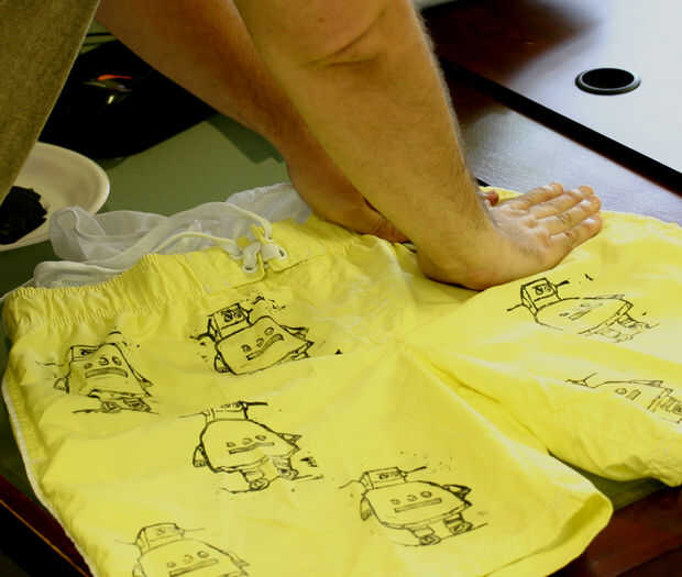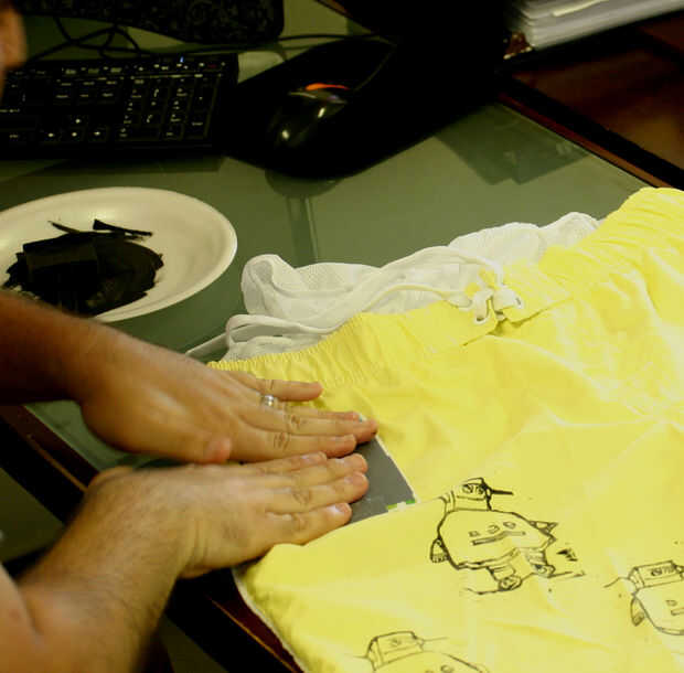 Aplique presión uniforme en el sello sellado y asegúrese de que se estampa en una superficie lisa. Cuando termine, que seca y repetida en la parte trasera de los pantalones cortos.