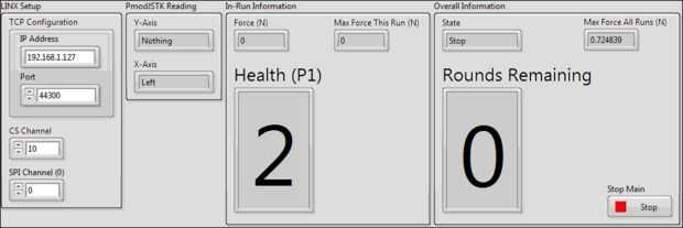 Para configurar los Estados, utiliza una enumeración constante que contiene "Setup", "Run", y dice "Stop". Se utilizó un registro de cambio para que después de un estado, puede enviarse una constante enumeración con el estado siguiente en el registro de desplazamiento del lado derecho y luego este valor sería introducirse en la estructura principal del caso para elegir el correcto estado. Un registro de desplazamiento se utilizó también para la salud y rondas restantes valores para que estos pudieran seguimiento y modificados entre los Estados.
