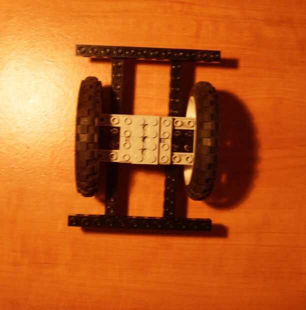 invertir motores y montar ruedas y conectarse delgadas 1 * 12 ladrillos de cualquiera de los extremos de la de los ladrillos de 1 * 16 (imagen 4)