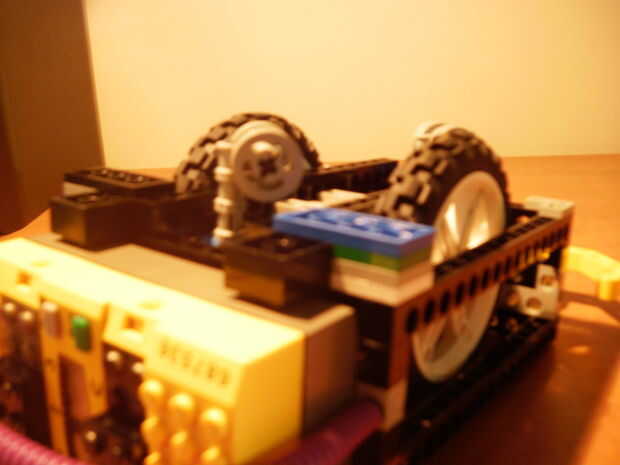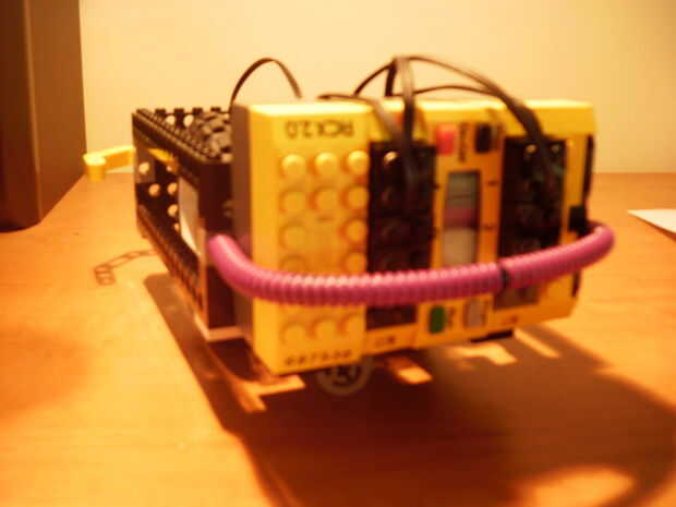 el cable de sensores de luz no serán lo suficientemente largos para llegar al ladrillo RCX cuando que se adjunta más adelante, así que conectarse en el cuerpo principal del bot entre los ladrillos que bloquear el motor y añadir otro cable corto (imagen 3)