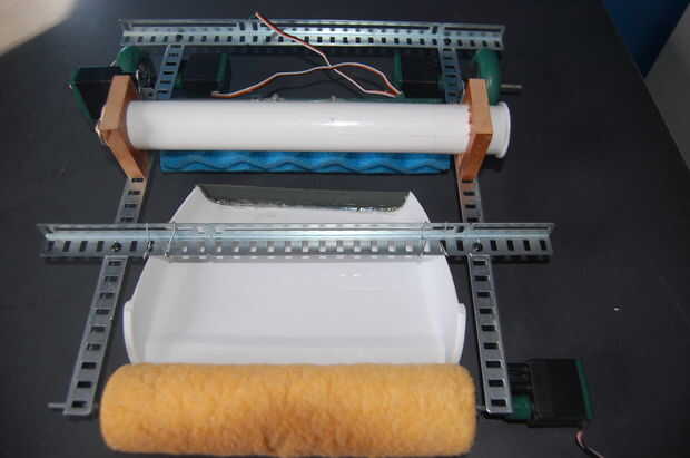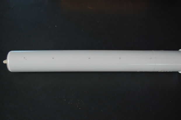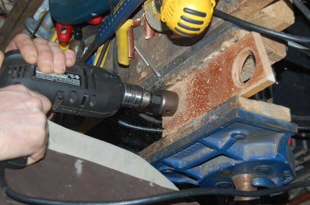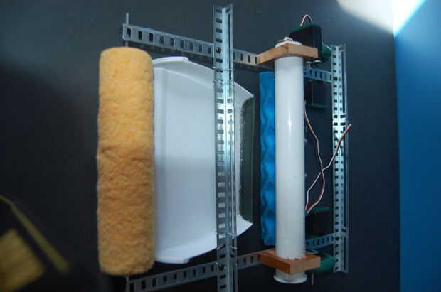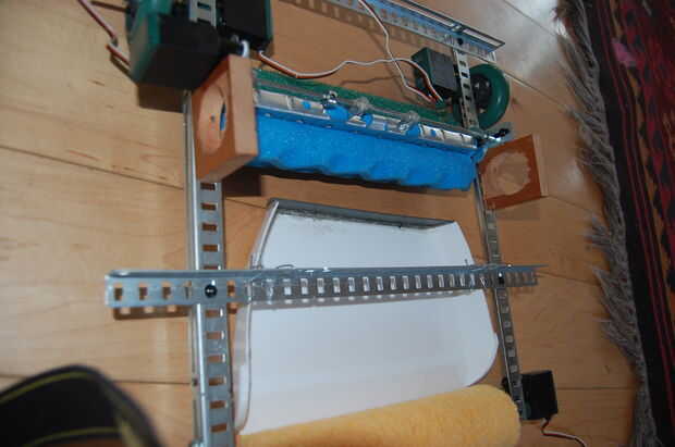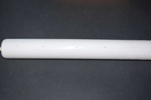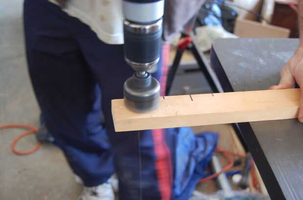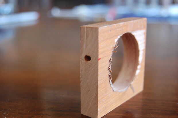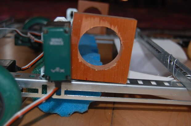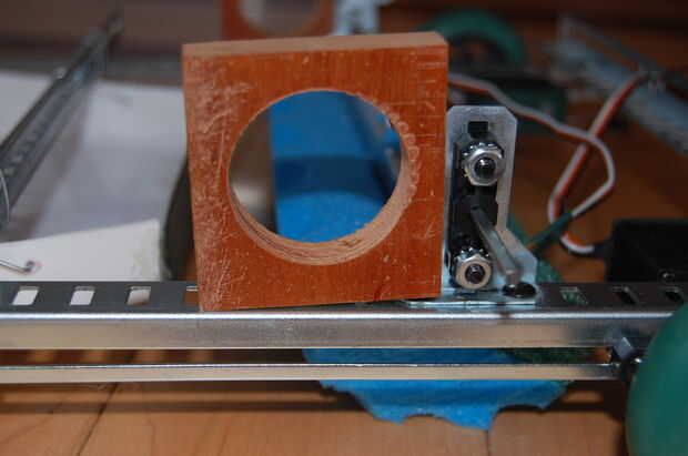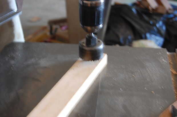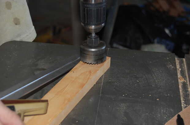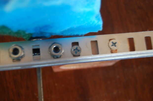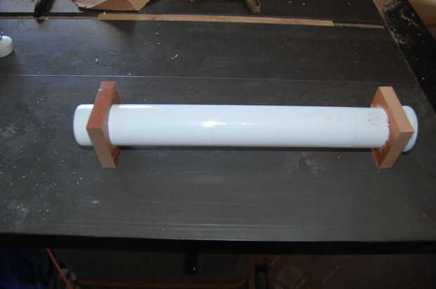 Ahora para controlar el flujo de agua, mantenga un clip sobre una llama para calentar - una vez es muy caliente poke sobre cinco agujeros en el tanque (todo en una línea y la extensión hacia fuera). Hacer un agujero más unos 60 grados por encima de los demás para que el aire en el tanque. Luego a poner los tapones en los extremos y deslice en los soportes de madera. Esta fue una de las cosas que no tengo mucho tiempo, así ahora solo vuelta manualmente para controlar el agua fluir.