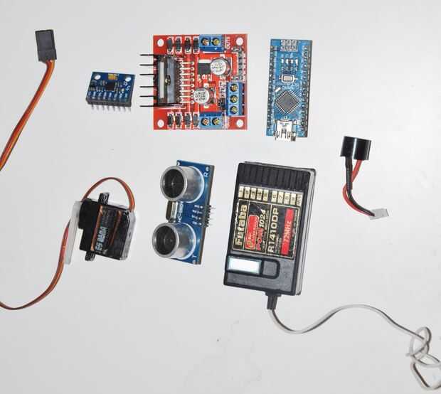 4. Controlador de radio Futaba T10CHP con receptor de radio R1410DP o cualquier controlador de Radio con receptor