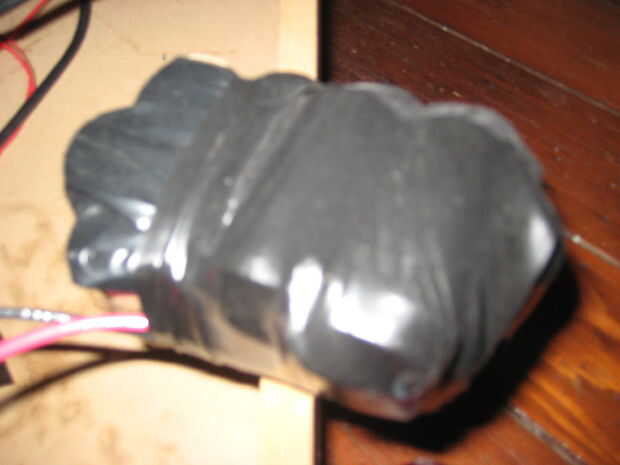 Para aprovechar los motores de dentro del taladro, desenroscar la carcasa de plástico que rodean las piezas del taladro con un taladro y broca pequeña o un destornillador. Una vez fuera, desechar el resto del taladro sí mismo y échalo de ti (a menos que encontrará una loca razón de por qué todavía la necesita – usted puede mantener el gatillo para usar como un botón más tarde para controlar el cañón de agua o el motor). Luego, desatornille la cubierta alrededor de la batería y tire de ella hacia fuera. Luego, comprobar que lado es positivo y cual es negativo usando un medidor multi. Luego soldar un trozo de cable de núcleo trenzado rojo con el extremo positivo de la batería y conecte un conector Anderson rojo al otro extremo (para hacer esto, tira de ¼" de aislamiento en el otro extremo del cable, uno de los pequeños pedazos de metal al cable pelado de la encrespadura y clip en el conector rojo de Anderson en la pieza de metal – Esto puede ser muy difícil). Repita este proceso para el extremo negativo de la batería usando el cable negro y un conector negro de Anderson. Por último, hacer el mismo proceso para la otra batería.