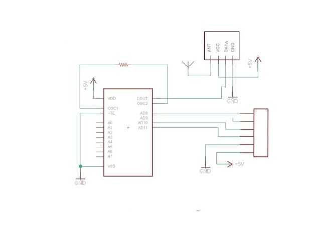 El circuito transmisor es contiene solamente un IC(ht12e) sólo tiene que conectar todos los cables como por el circuito del transmisor se puede ver un cuadro rojo en el circuito simplemente ignorarla. Tengo siempre imagen notas A, B, C, D en el circuito del transmisor conectarlo a, B, C, D, E respectivamente en el guante. Cómo hacer el guante que me referiré en el siguiente paso