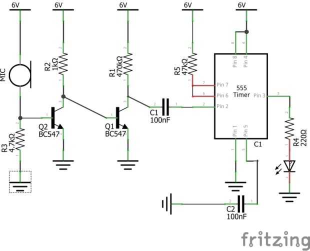Trabajo: cuando un sonido se produce con el LED de encendido para algunas veces y vuelta offs