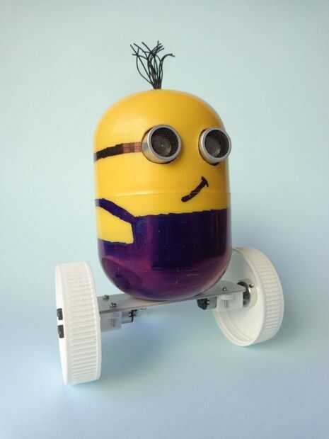 Hace mucho tiempo (creo que son cuatro años) mantener esta cápsula (obtenida de un huevo de Pascua Kinder, que fue utilizado como la parte del cuerpo principal del robot) y recientemente lo recordó y se dio cuenta de que sería el material ideal para hacer un Minion.
