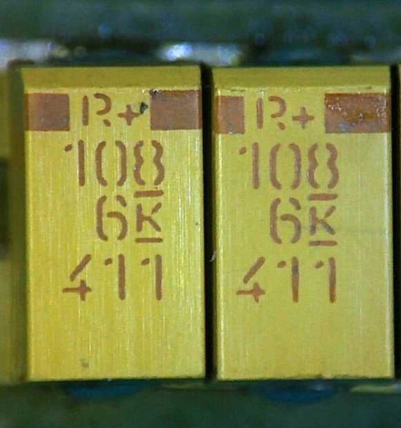 Hay la x4 capacitores SMT TANT en la inversa de mi PCB en paralelo y conectados al positivo y negativo de mi célula solar.
