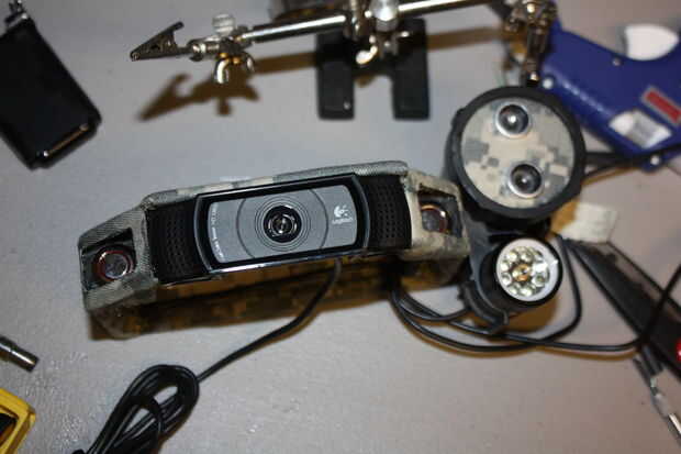 La cámara web será necesario modificar un poco quitar el Monte pesado al de fábrica. Esto es realmente fácil de quitar y requiere solamente una precisión destornillador Philips. Los tornillos para este montaje se encuentran en la parte inferior bajo poco cubiertas adhesivas de goma. Una vez que estos tornillos se sacan, simplemente separe la cámara con cuidado, retire el soporte y luego vuelva a montar la cámara. Una vez que se ha quitado la montura de la cámara, descartarlo, no es necesario para esta construcción.