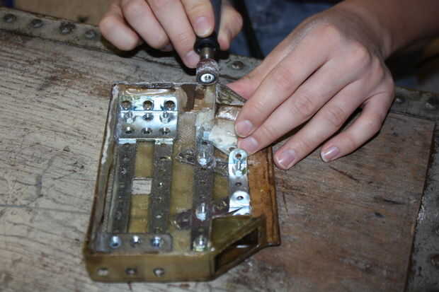 Anímate y prueba los agujeros del "ojo" para asegurarse de que los interruptores, cortar y lijar si es necesario.