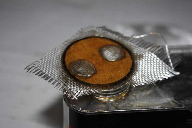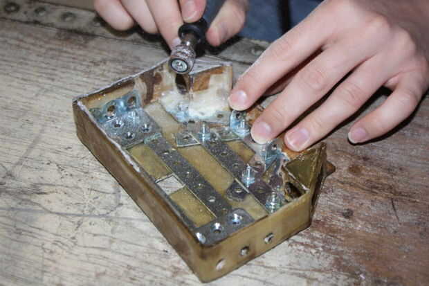 Con piezas de desecho de fibra de vidrio rellena los huecos en el soporte del radiador y aplique la resina. (Imagen 3)