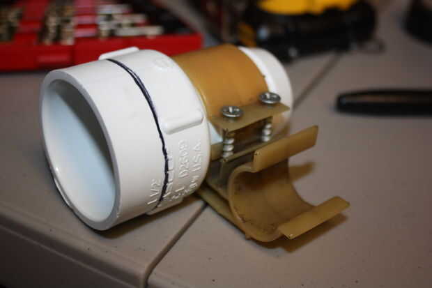 Encontrar un adaptador de PVC que permite el sensor ping caber en un extremo, permitiendo que apoyar la manguera de radiador para cerrar por el otro.