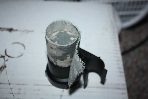 Una vez que tenga el mobiliario adecuado de la cara de sensores en el adaptador de PVC, pegamento de la tela para el exterior frente a lado de esta cubierta. Recorte el exceso y cortar los agujeros para los sensores empujar a través. (O pintura)