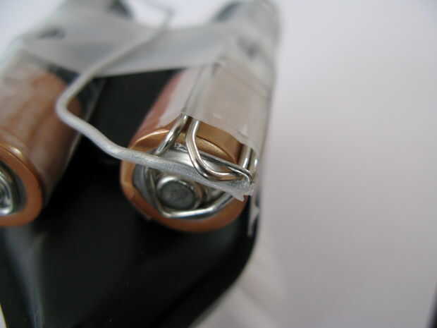 Ahora conectaremos el + polo de una batería al - polo de la otra.