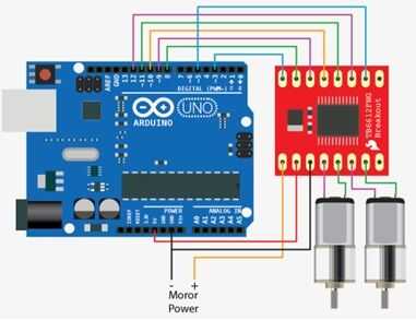 Para la alimentación, yo solía usar dos baterías, uno para los conductores del motor y otro para el arduino.